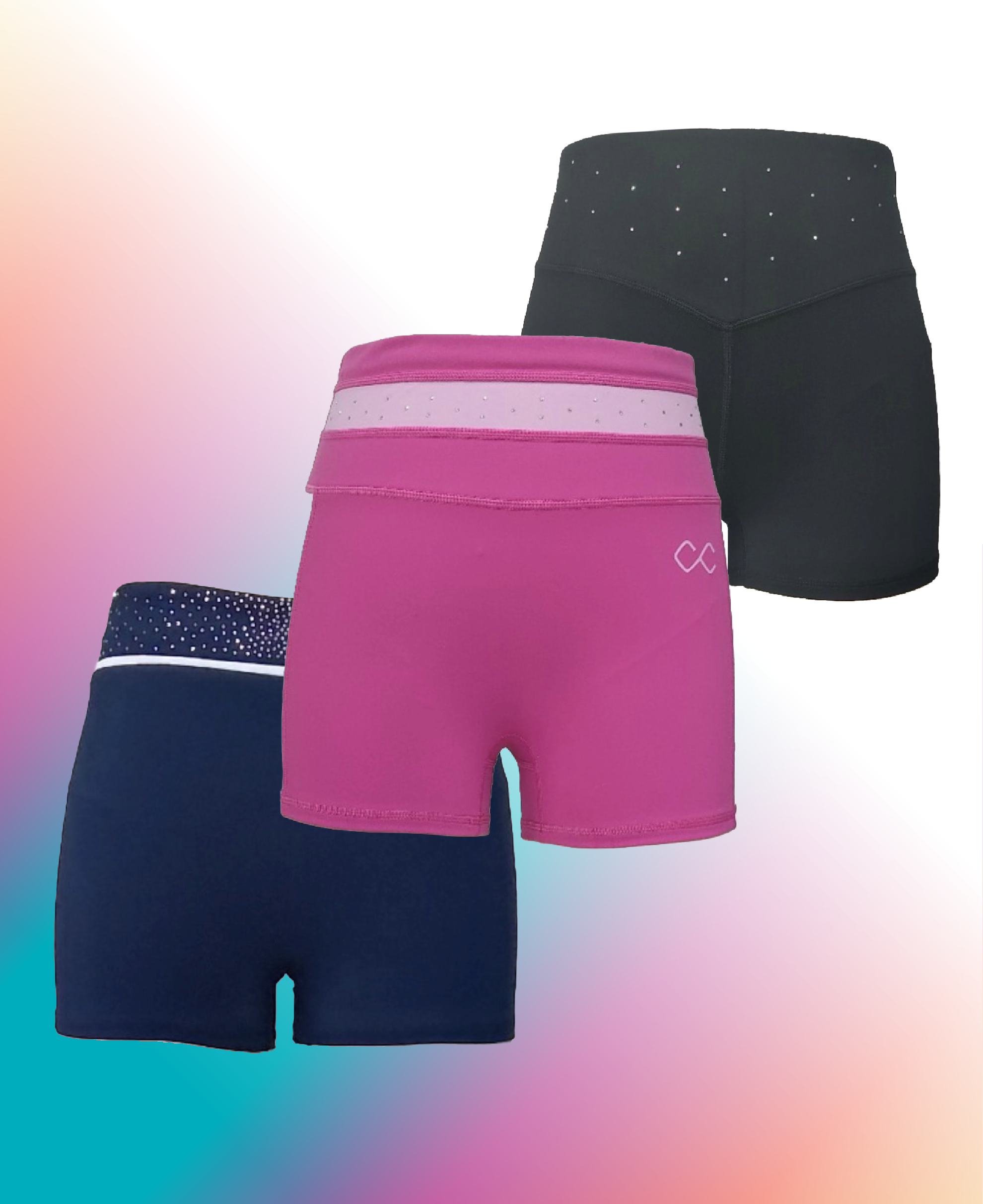 Bling'd Up Range - Fitted shorts w/diamantés. Available in Black, Pink & Navy.